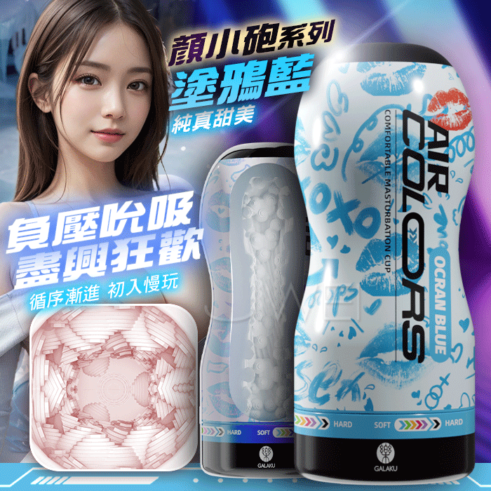 GALAKU.顏小砲 循序漸進初入慢玩 負壓吮吸飛機杯【塗鴉藍】