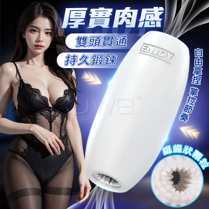 ENJOY.雙頭貫通 鋸齒狀顆粒剮蹭 持久鍛鍊自慰套【乳白】