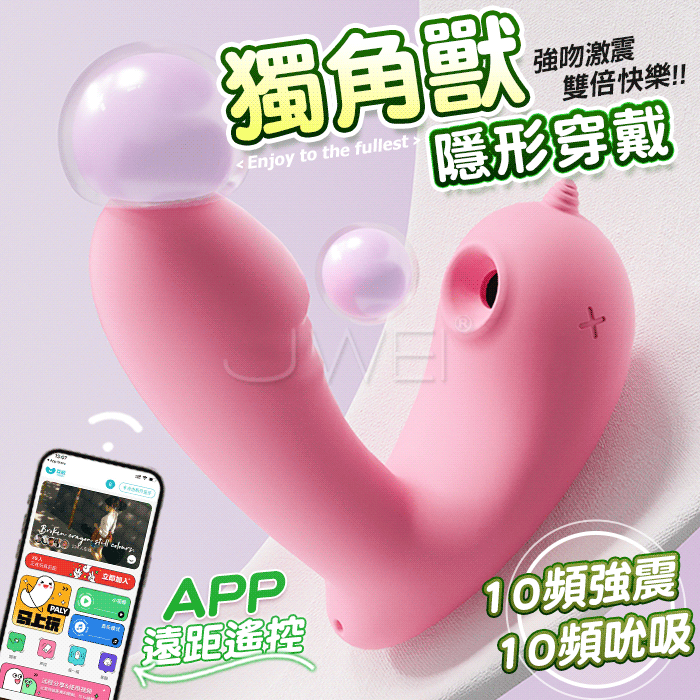 GALAKU.精靈 獨角獸 10X10 強震吸吮 APP智控加溫 尾端浪紋刺激穿戴按摩器【浪點粉】