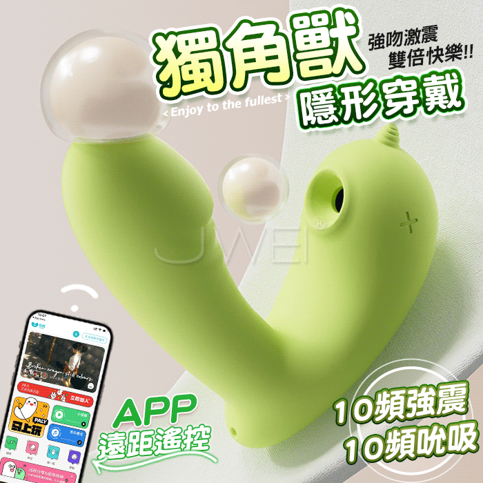 GALAKU.精靈 獨角獸 10X10 強震吸吮 APP智控加溫 尾端撥點刺激穿戴按摩器【波點綠】