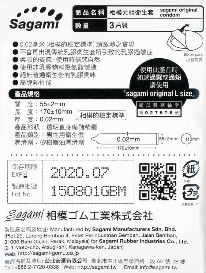 最新的相模原創保險套,竟然只有0.02毫米,也就是說只有1毫米的50分之1的薄度。就和你在廚房用的保鮮膜一樣薄。