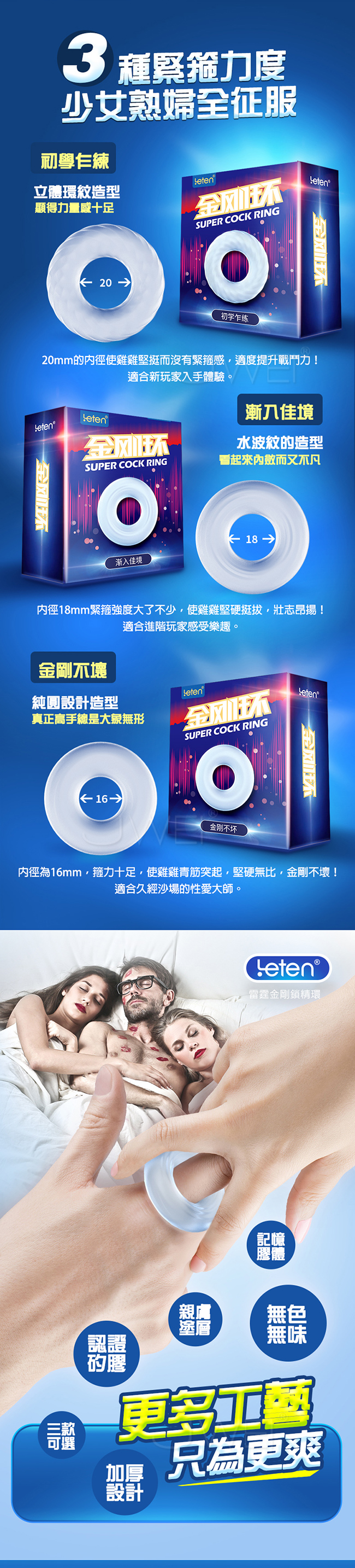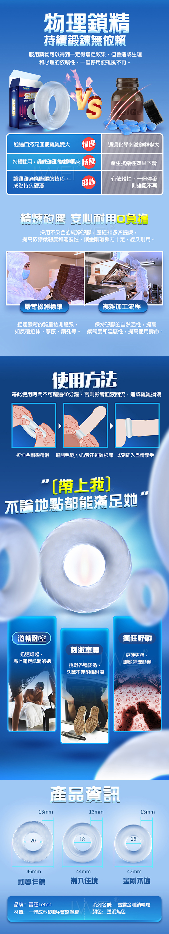輕套上,一秒感受堅硬挺拔 讓每一次抽插撞擊,都強勁有力,另他慾仙欲死。緊鎖陽具根部,減緩