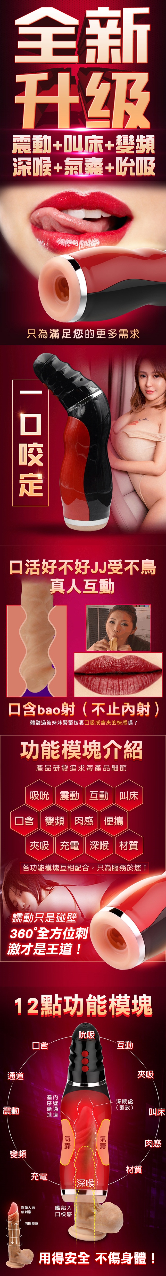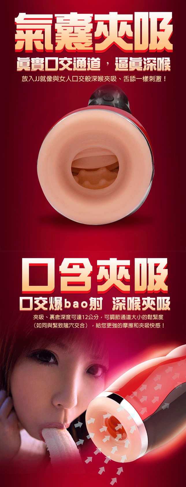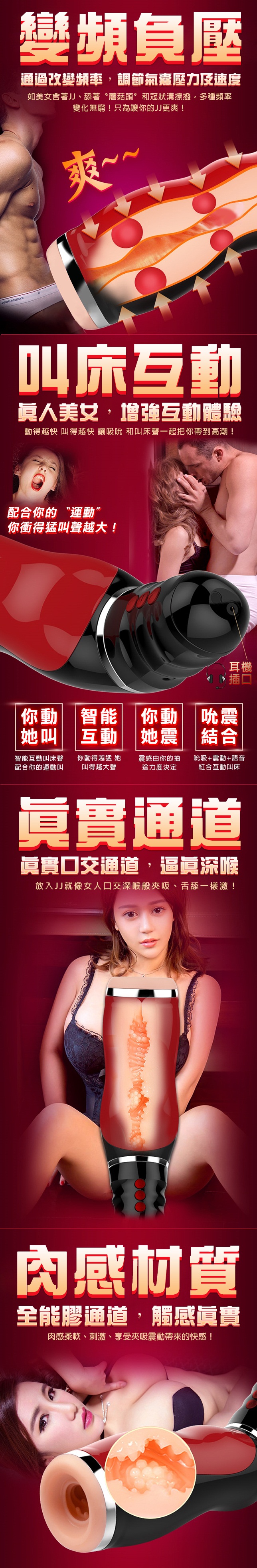 本款夾吸飛機杯,精致工藝設計,符合人體工學結構,生活防水。握感舒適,展現優美時尚的氣息。語音刺激享受,夾吸體驗,震動快感。簡單的操控,給您更多的性無限,超級靜音強大的震動夾吸給您帶來無限的快感,性愛更精彩。