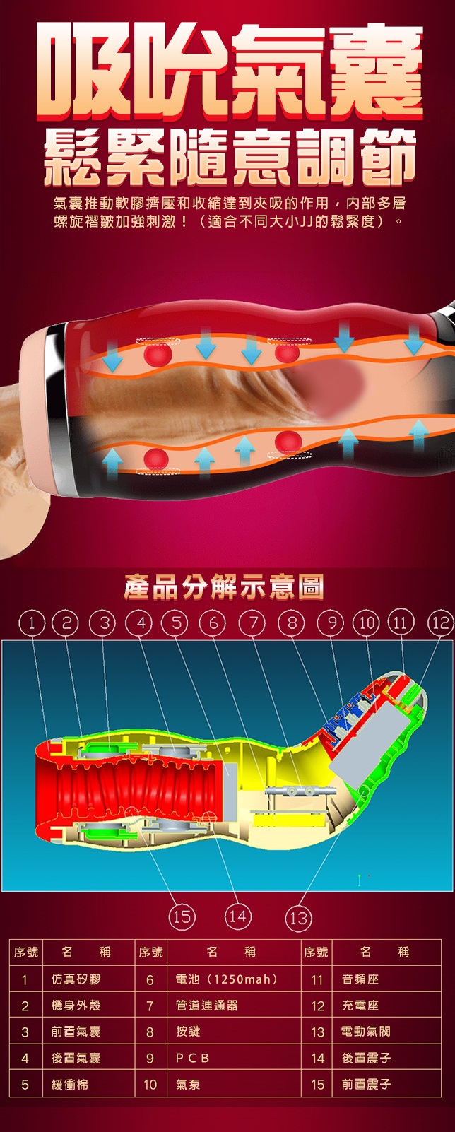 規格:電壓1.5V震動/叫聲/3頻/吸吮