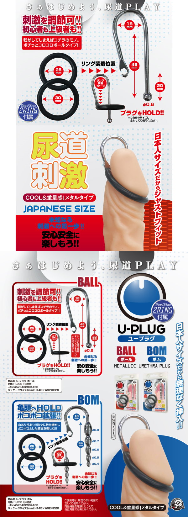 ▼固定用リングが付属した尿道プラグ、U-プラグ。同時発売の商品はこちら