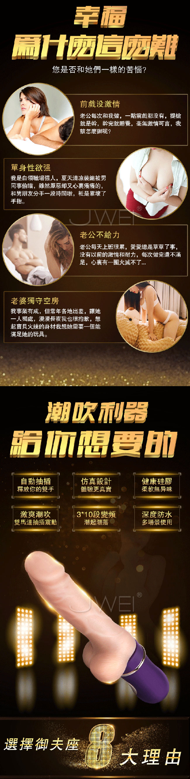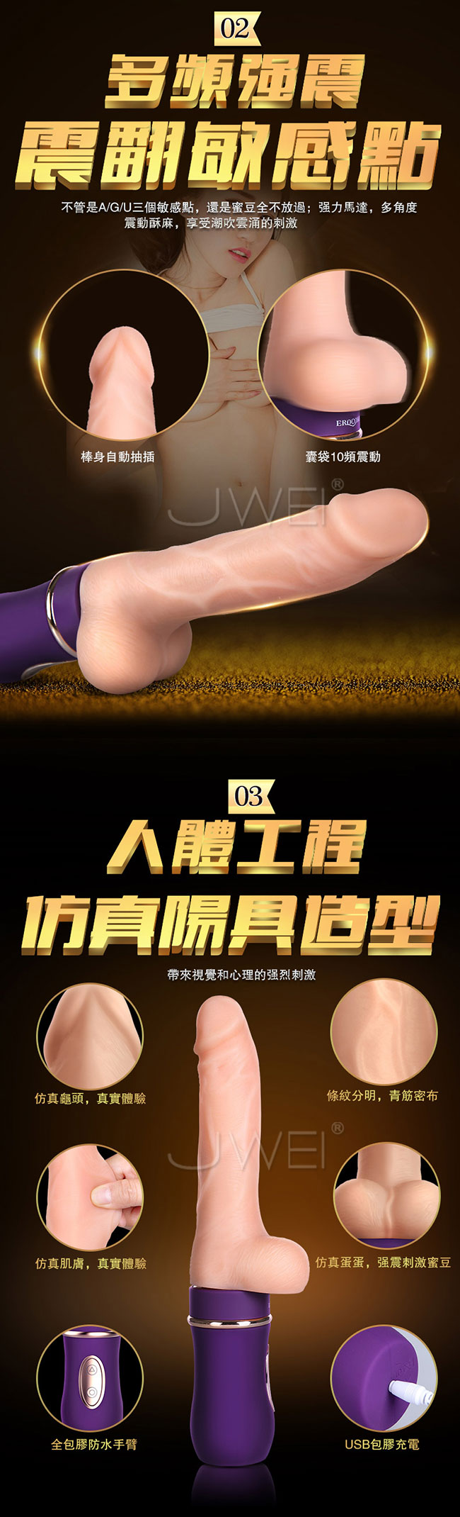 全自能抽插棒享受充擊式的高潮,以每分鐘480次活塞抽送,最長進出達3厘米體驗逼真快感。並切擁有3X10段伸縮震動模式,任您挑選邊插邊震雙重刺激,激發高潮!!以及逼真的仿真造形細膩肉感帶給您如真人般的強烈快感