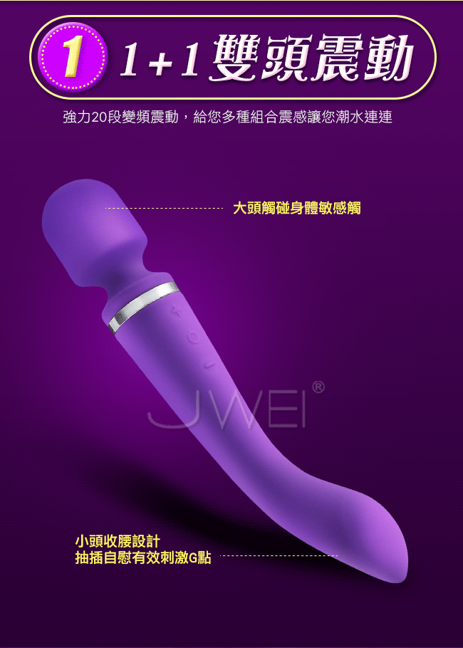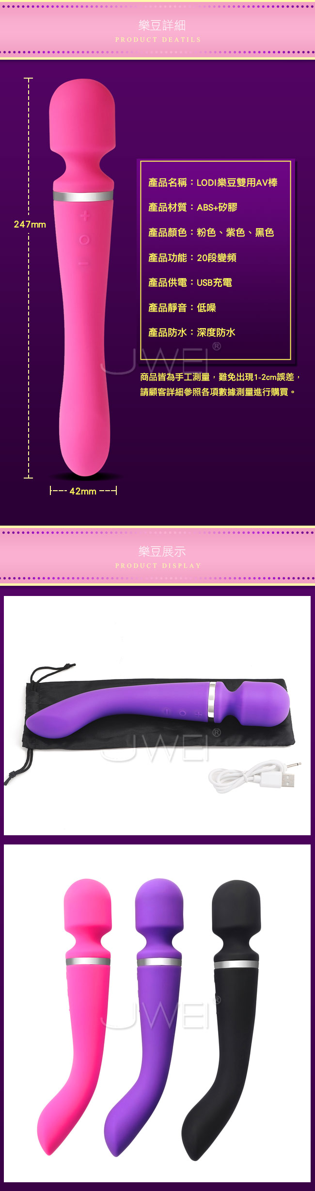 ►您現在的位置:首頁>★★樂豆LODI.20段變頻1+1雙頭可用防水AV按摩棒-紫色