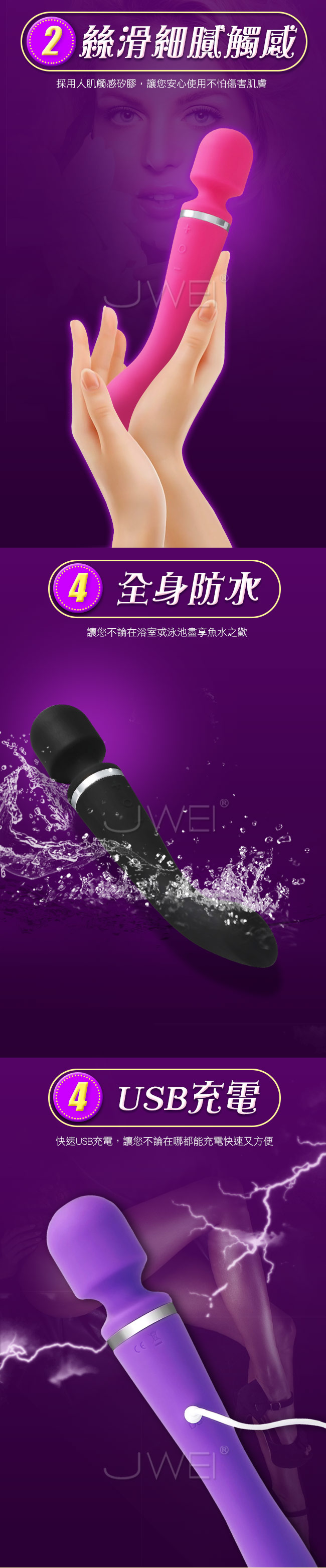 樂豆雙頭AV按摩棒擁有20段變頻震動模式且雙頭可用,大頭觸碰身體敏感點,小頭收腰設計不撐大私處可插入蜜穴刺激G點,搭配震動多種組合讓您輕鬆達到高潮喔~此款採用細膩親膚矽膠,讓您可安心使用不怕傷害到您嬌嫩的肌膚。且設有防水設計讓您不管在浴室或泳池都能盡享魚水之歡唷~