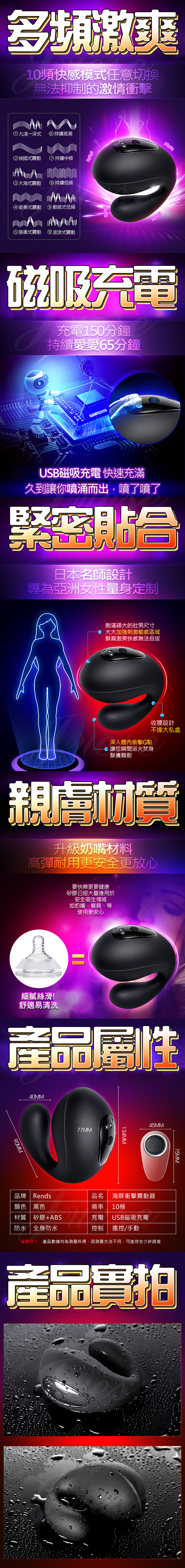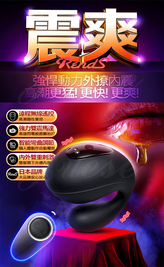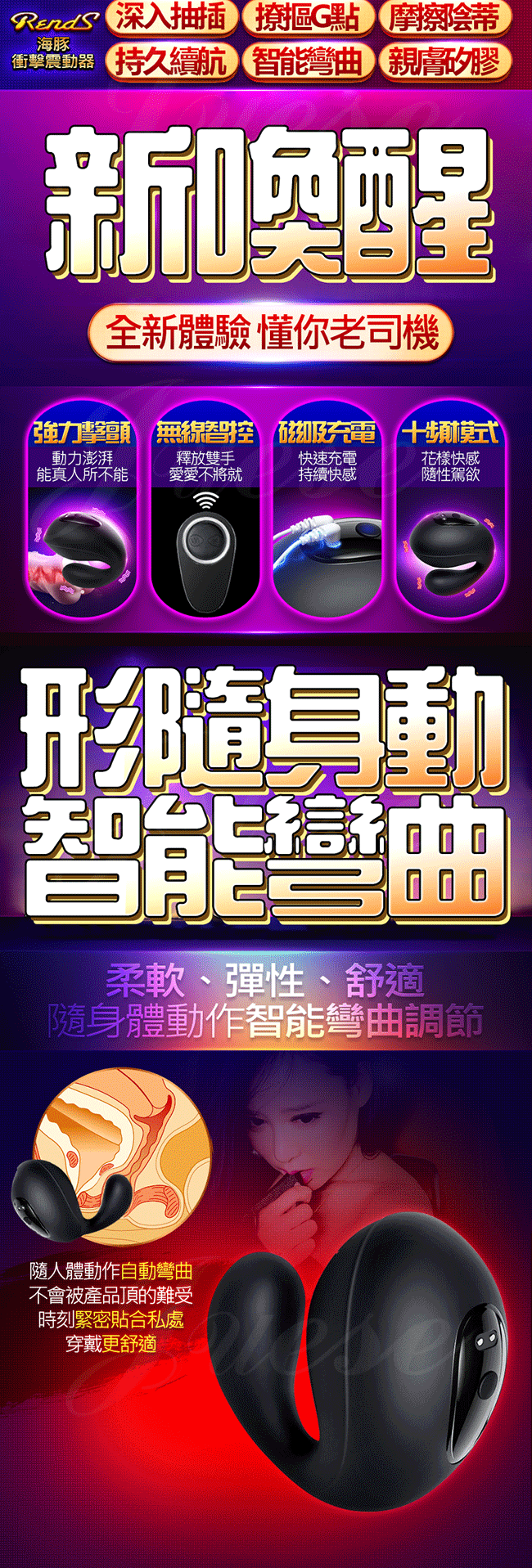 RENDS-海豚 10段變頻黑色衝擊摳G撩蒂遙控震動跳蛋