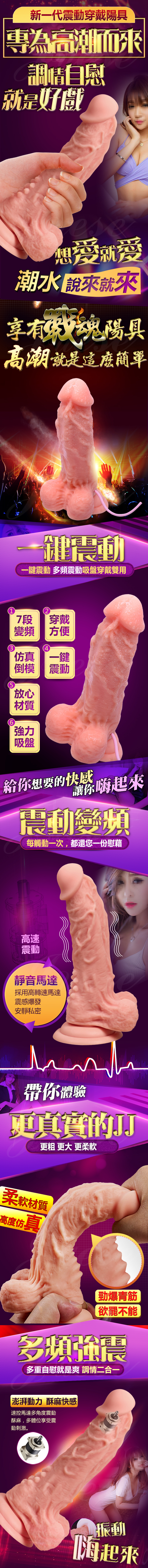 ►您現在的位置:首頁>戰天 7段變頻震動 肉感實心穿戴式老二矽膠按摩棒-大號