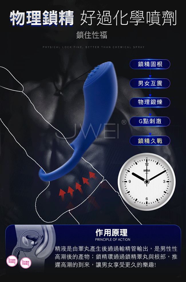 喚醒猛男力量以男用鎖精緩射為基礎,夫妻共用情趣為升級,採用柔軟矽膠材料,循環充電給人們帶來情趣生活新體驗。擁有8種震動模式由快到慢,由你掌控,盡享麻酥體驗喔~根據亞洲男性尺寸專門定製,仿手指紋路刺激,準確貼合雙方私處。
