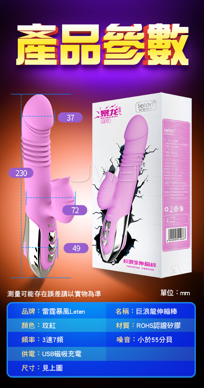 Leten.巨浪龍 三速七頻智能加溫舔吸蜜豆全自動伸縮按摩棒