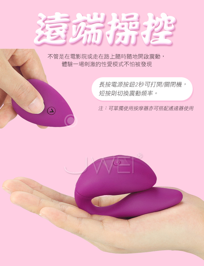 此款高品質精緻男女共震震動器,提供大膽時尚的色調。C型設計符合人體工學緊密貼和不撐大女性私密處可同時刺激男女雙方,非常適合與情一侶愛人同使用。擁有強力雙馬達設計擁有11種變頻震動模式,多種選擇挑選出最適合彼此的高潮模式。可遠端操控讓您不管是在電影院裡或走在路上隨時隨地開啟震動,與愛人體驗一場刺激的性愛模式而不怕被發現喔~100%防水功能不擔心愛液洶湧,搭配低噪設計讓您享受私人靜謐空間,不怕被聽見打擾與愛人的甜美時光~