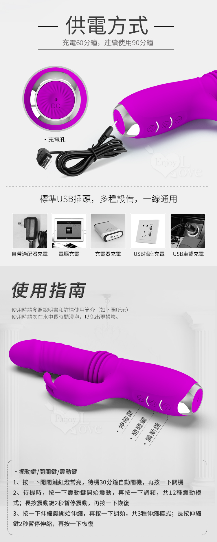 派蒂菈 ‧ Dorothy 多蘿西 多重精巧按摩棒﹝3伸縮+12強震+內外同樂+親膚硅膠+USB便捷充電﹞紫