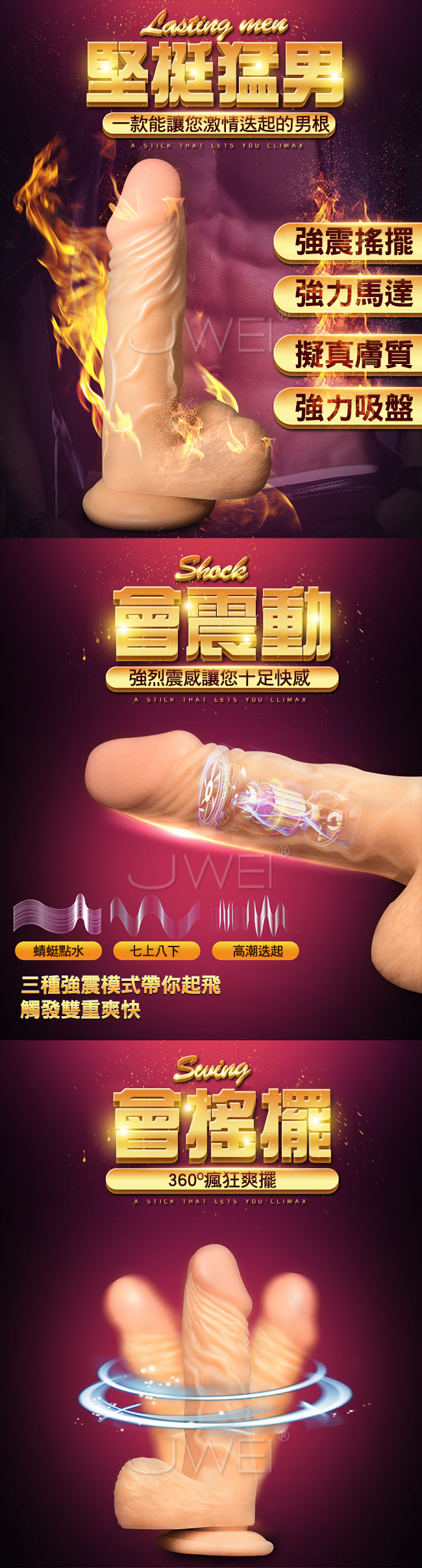 一款能讓您激情迭起的異想男根,擁有強烈震感讓您十足快感3種強震模式搭配360度瘋狂爽擺帶你起飛觸發雙重爽快。採用柔軟矽膠觸感舒適使用安心安全喔~擬真膚質手感逼真肌膚觸感真實,柔軟Q彈有韌性逼真男根感受採用標準男模倒模而出,陰莖上紋路呈現清晰,觸感強烈。還擁有強力大吸盤,吸盤給力在哪兒都能玩讓您愛愛不再受限。