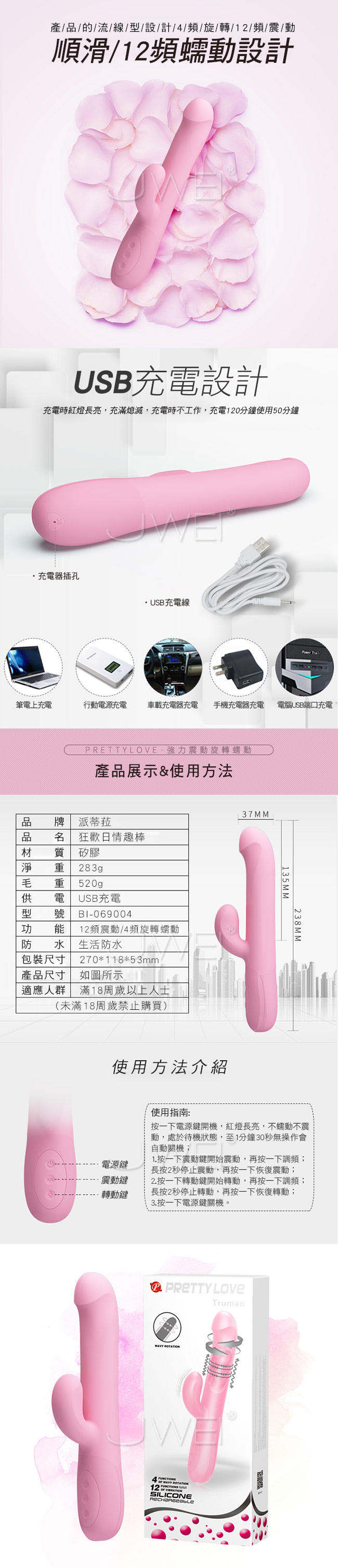 ■特色:12段變頻震動、4段旋轉蠕動模式、生活防水、低噪設計