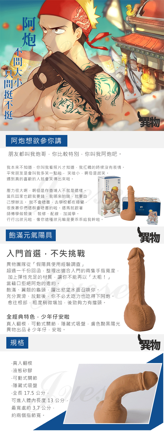 ►您現在的位置:首頁>阿炮.真人翻模逼真老二棒(可動式關節)隱藏式吸盤