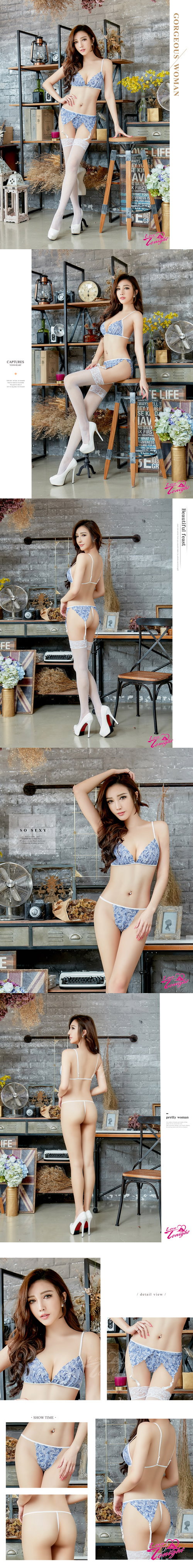 下半身搭配同款丁字褲及吊襪帶造型裙,