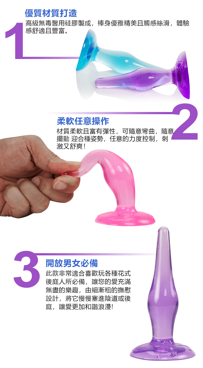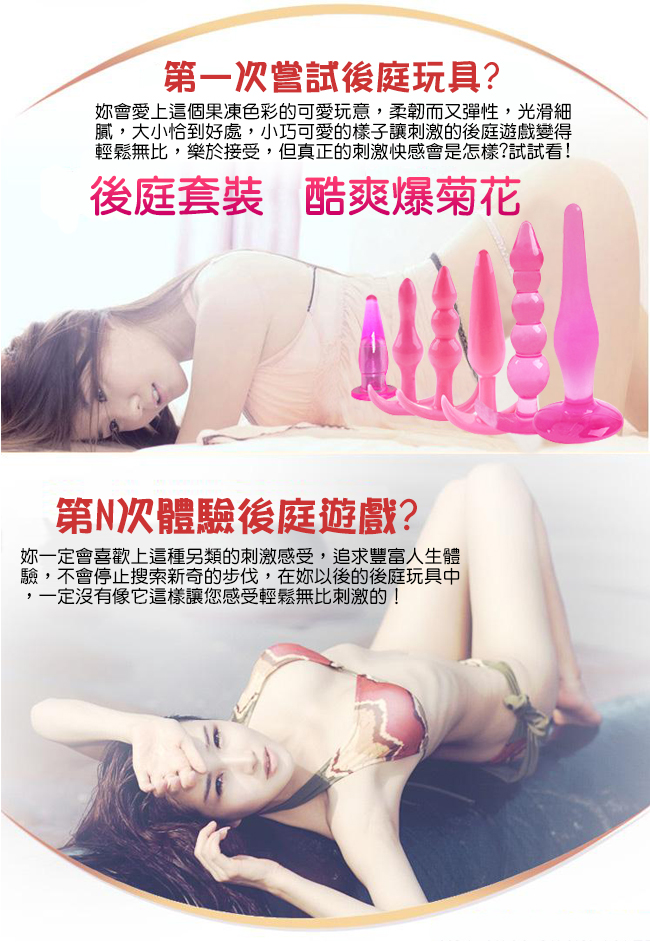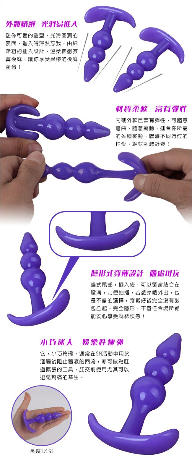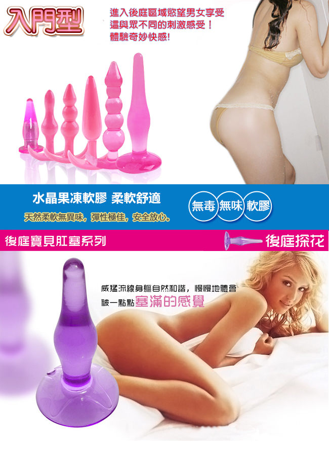 Anal plug 享樂B套裝 - 水晶果凍軟膠 六件後庭肛門塞組﹝紫﹞初級入門型