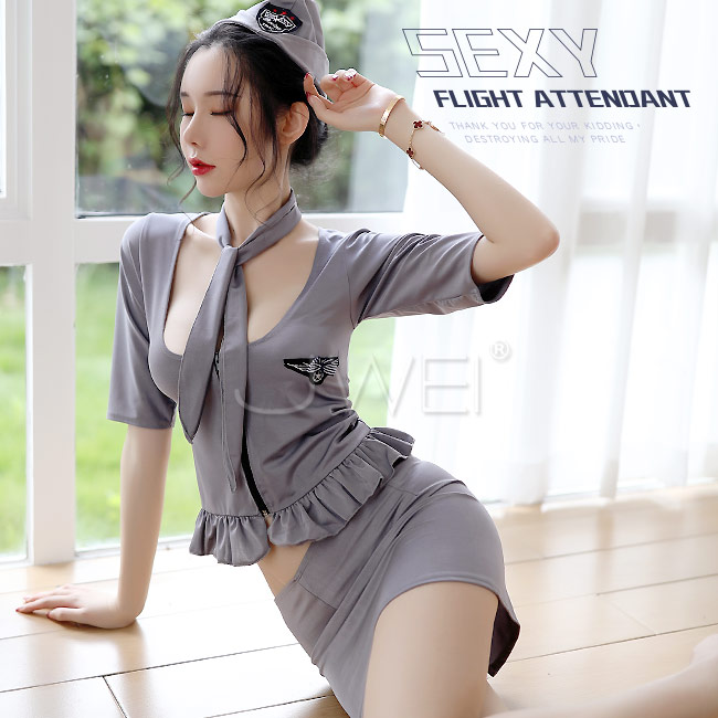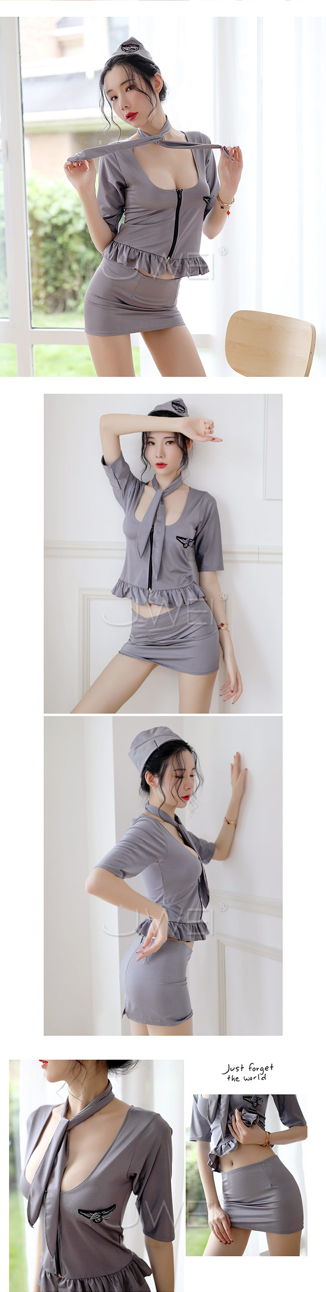 | 空運愛情.性感包臀短裙分體式空姐套裝五件組