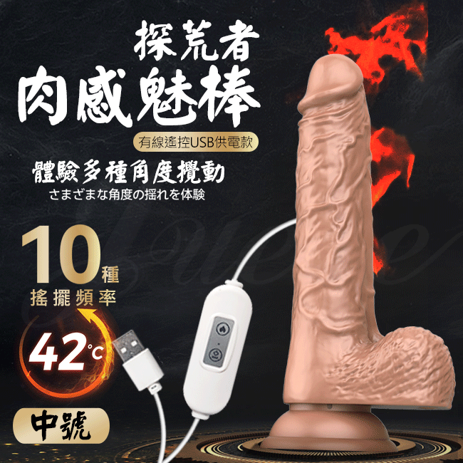 | DMM-探荒者 10段變頻伸縮搖擺加溫遙控吸盤仿真按摩棒-中號