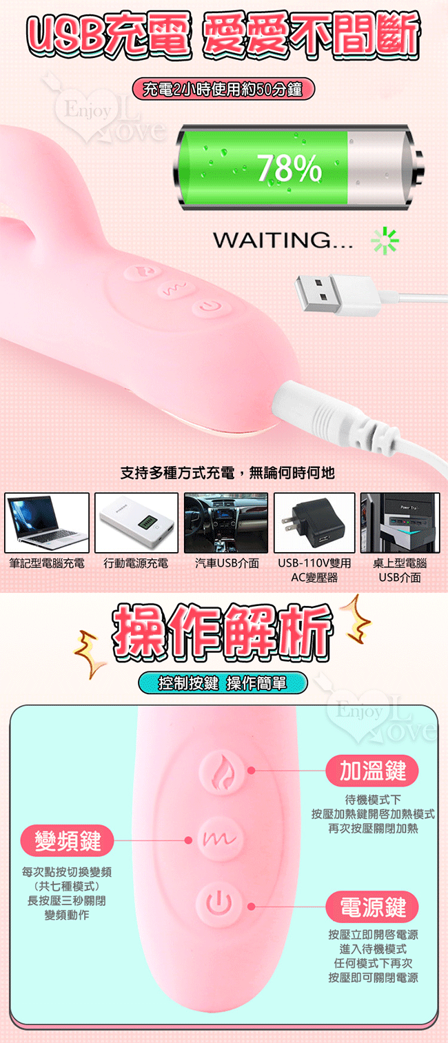 ►您現在的位置:首頁>☆限量出清☆悅潮 ‧ 多功能仕女按摩棒﹝7頻伸縮搖擺及撩弄+智能加溫+USB便捷充電﹞
