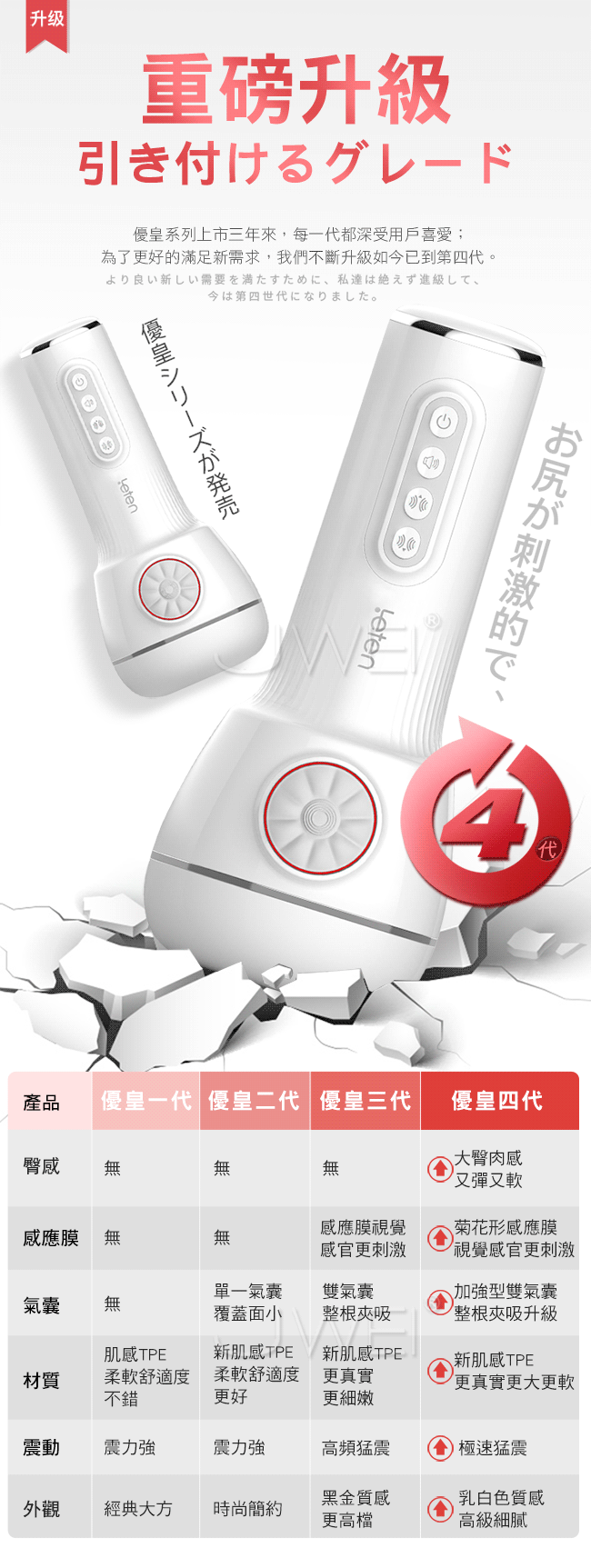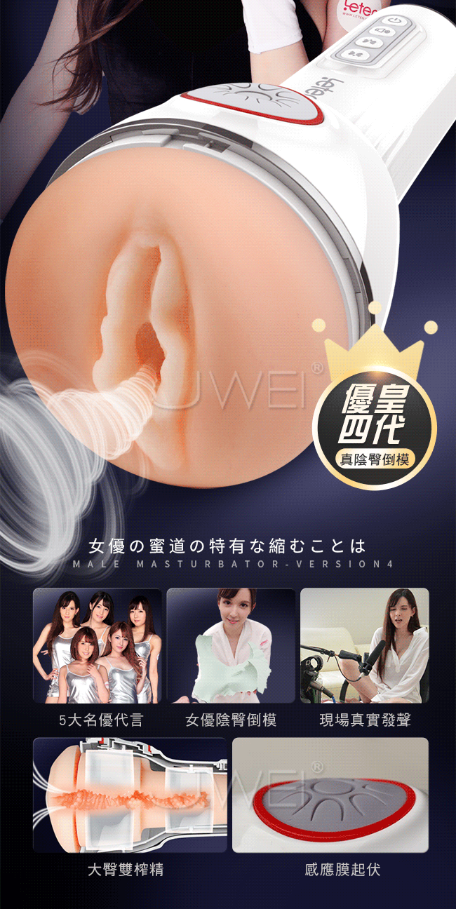 ►您現在的位置:首頁>✦限量出清✦優皇Ⅳ代.女優榨精の王4代 瀧澤蘿拉-3檔7頻氣囊夾吸發聲互動榨精飛機杯