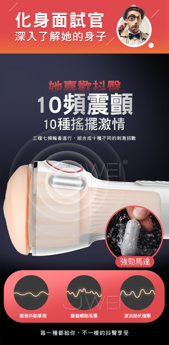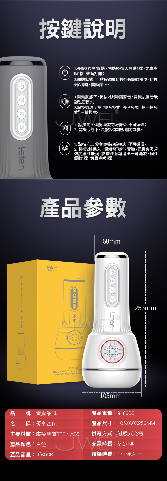 榨精之王採1:1倒模通道看一眼,便讓你無恥的撐起帳篷!!通過雙氣囊的蠕動夾吸,模擬女優特有的深淺榨精術,非同一般的性享受。花式狂榨3檔7頻輪番進行,組成十種不同的刺激招數搭配智能互動讓你動越快夾震越猛。此款發聲功能為波多現場嬌喘,讓您體驗更具現場感身臨其境般的享受。