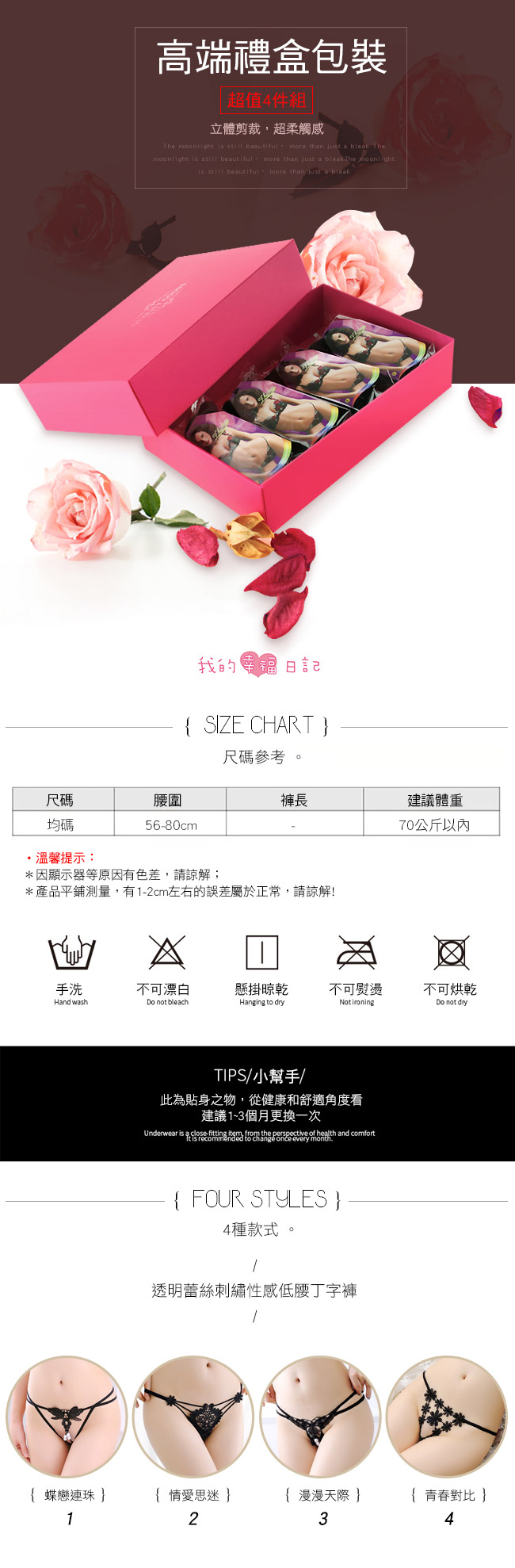 ■內容物:禮盒組x1(內含4件丁字褲)