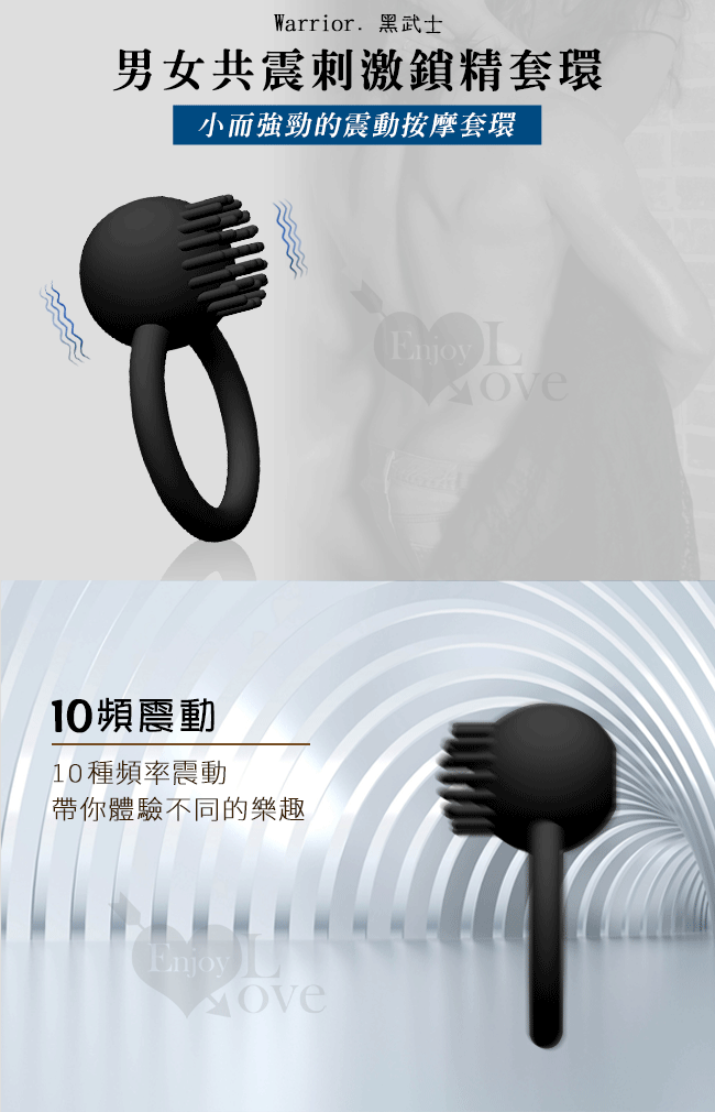Warrior 黑武士 ‧ 男強女樂共震刺激鎖精助性套環﹝10頻震動+USB充電+靜音﹞