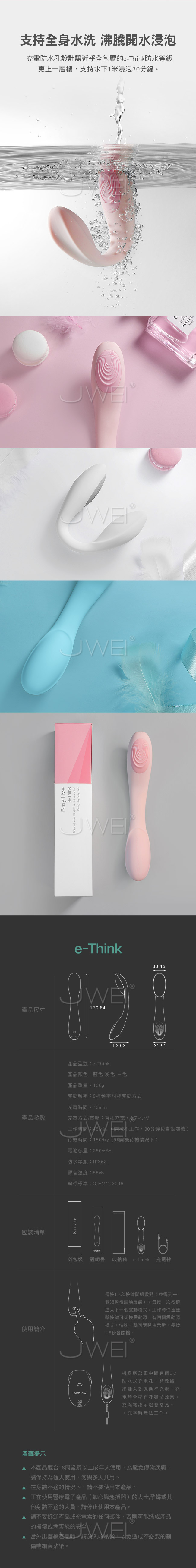 | Easy live.e-Think 8段變頻頻男女共震G點U型按摩棒-粉色