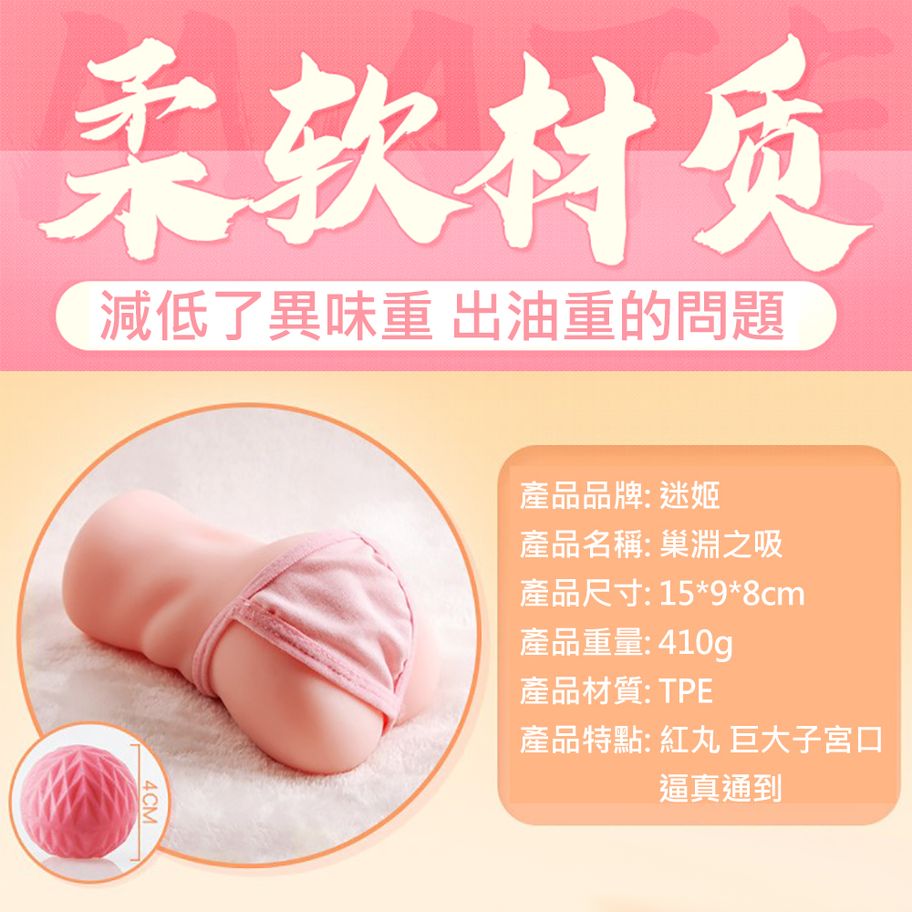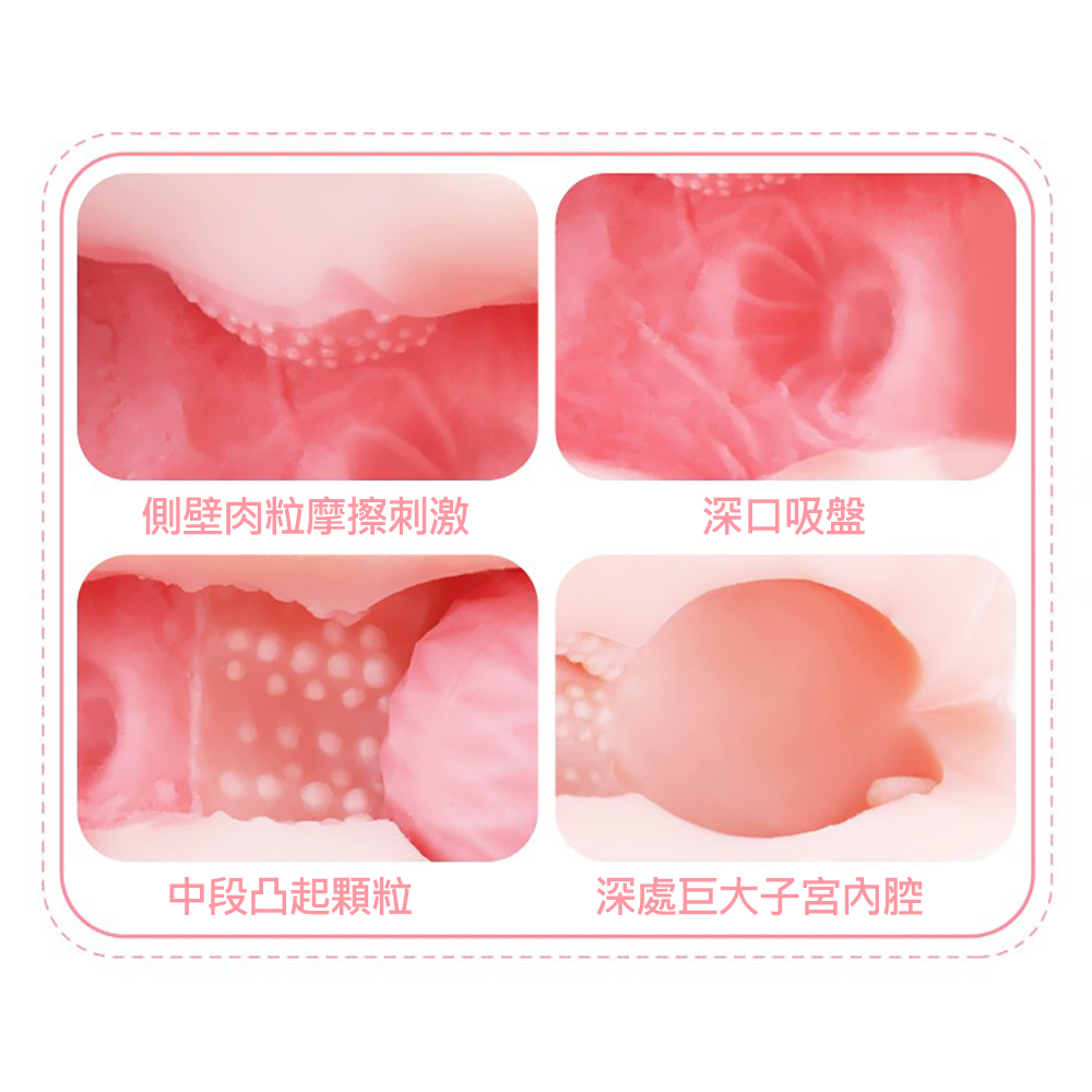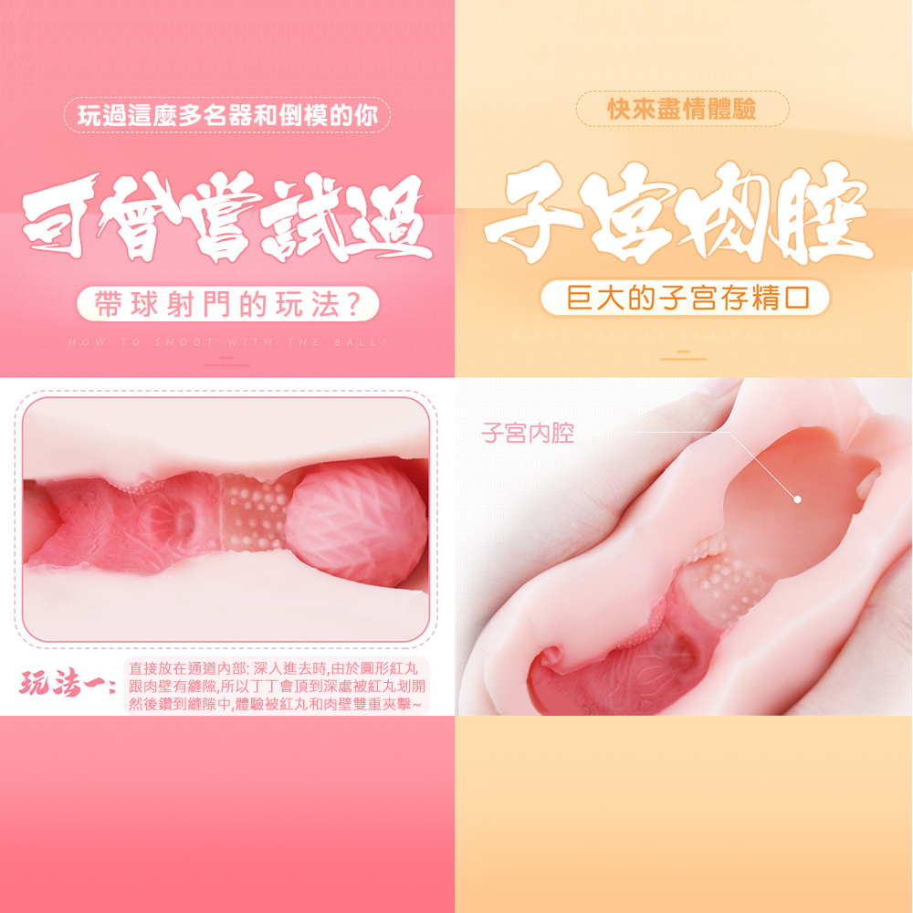 擬真刺激通道,巢淵之吸,巨大的子宮內腔通道 多重刺激,強力夾吸,柔軟嫩彈,逼真通道 紅丸直接放在通道內部,深入進去時,由於圓形紅丸跟內壁有縫隙,所以DD會頂到深處被紅丸劃開然後鑽到縫隙中,體驗被紅丸和肉壁雙重夾擊~ 紅丸放在通道口,開始進入就會受到紅阻礙,體驗層層突破的快感;由於紅丸撐起了通道超於寬鬆,紅丸每進去一寸外部通道就會自然縮緊,前段阻擋,後端通過擠壓,雙重快感