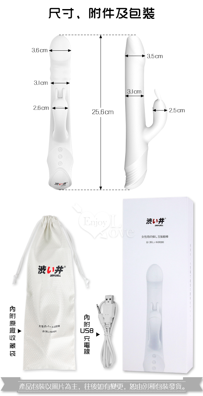 日本Drywell【涉い井】3X7抽插轉珠變頻震動多功能按摩棒 (白色典雅)