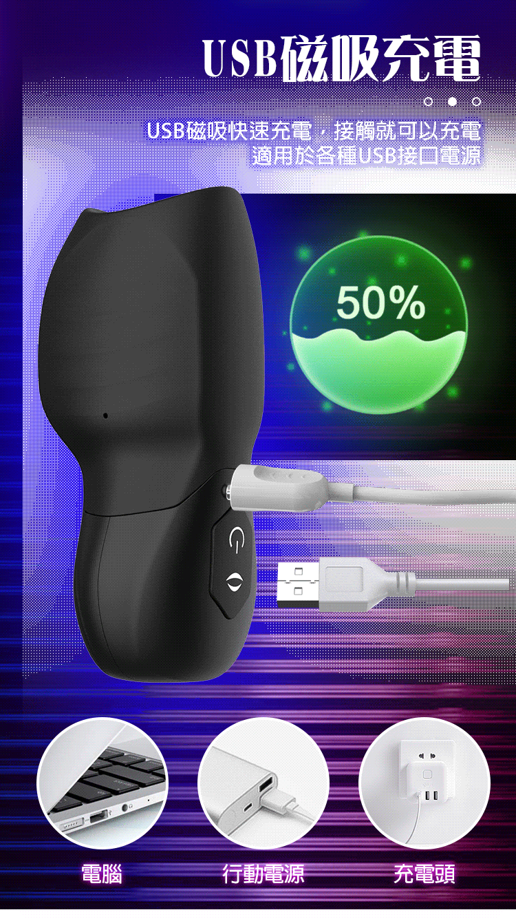 開關鍵:長按,開/關機;短按,切換下一頻率;快按2下,暫停震動功能。