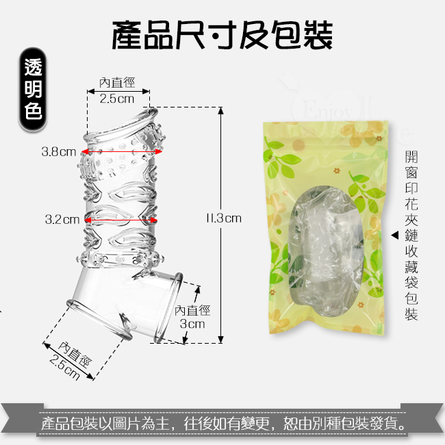 ►您現在的位置:首頁>Enjoy Love ‧ 久戰加強 顆粒螺紋刺激 增粗延時助性鎖精水晶套 - 肉感膚質﹝透明色﹞