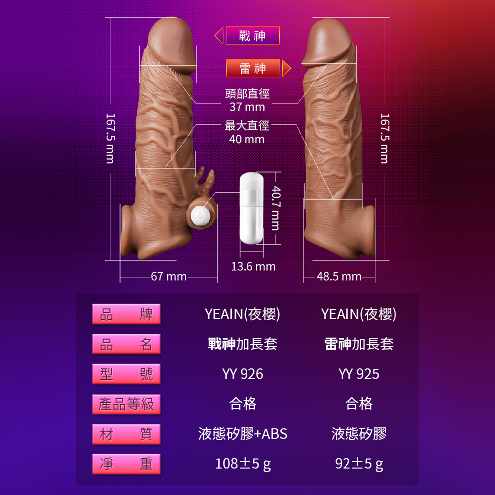 夜櫻YEAIN 雷神加長套(普通款) 狼牙套男用加長加粗陰莖套持