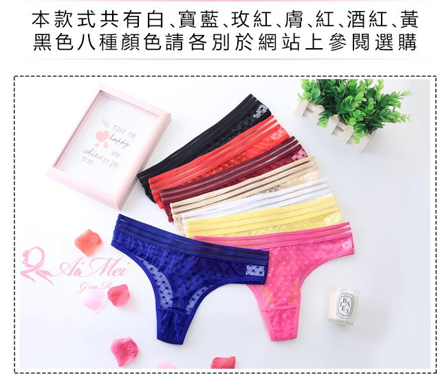 純情暗號!薄透方塊圖樣柔紗T字褲﹝玫紅﹞
