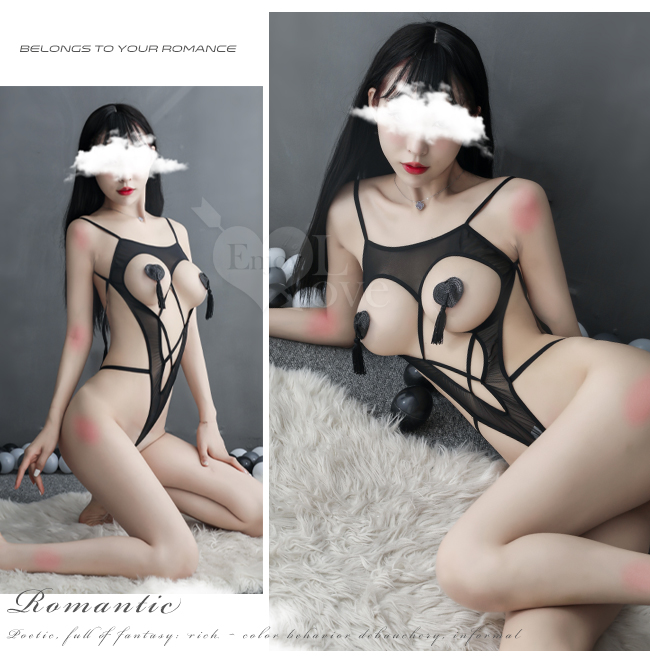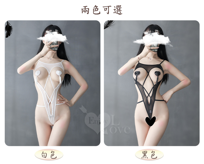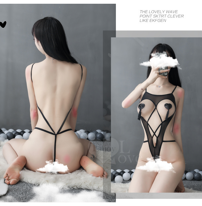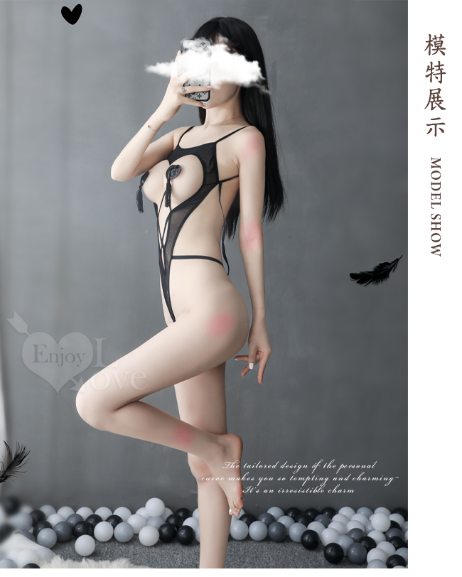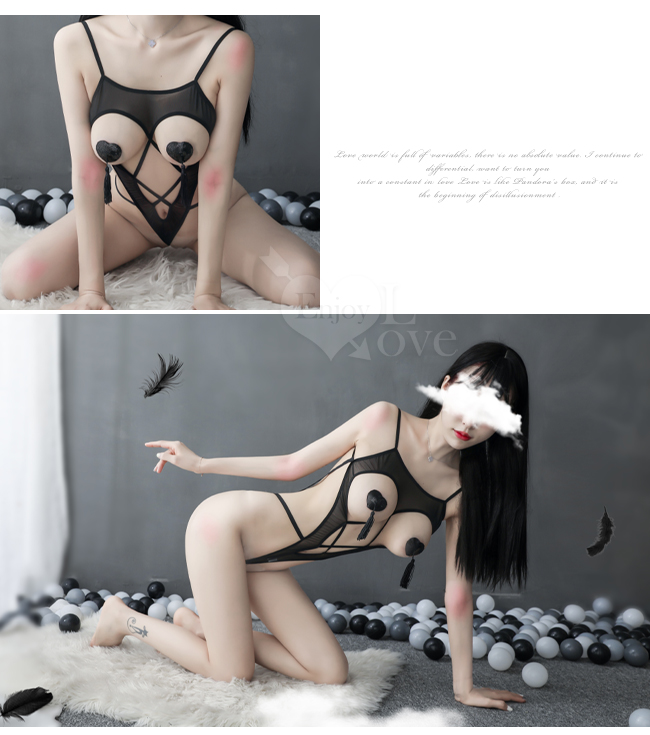 《 Enjoy Love 》情趣連身衣!美胸爆乳細帶交織V型露背連身衣﹝黑﹞