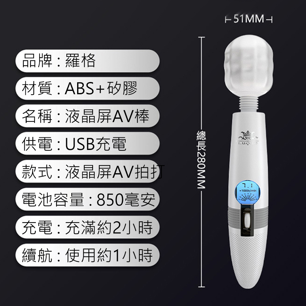 顏色:白色 種類:9速7頻 材質:矽膠+ABS 包裝:紙盒包裝 產地:大陸製 電源:USB充電 商品尺寸:全長28cm、最大直徑5.1cm、重量213g 盒子尺寸:長29.5cm、寬6.5cm、高6.5cm