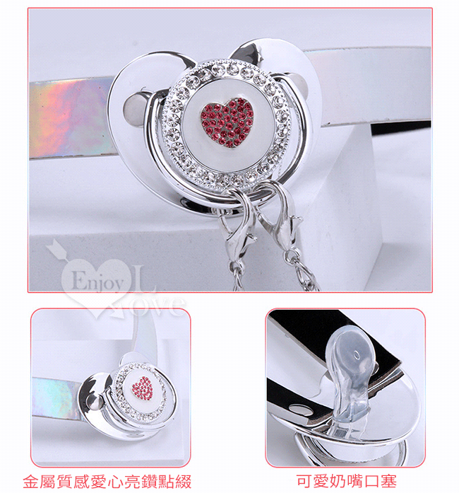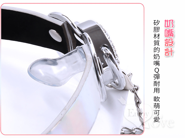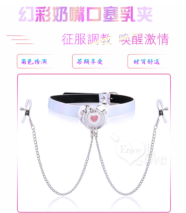 首頁>SM 激性調戲 ‧ 幻彩皮革亮鑽奶嘴口塞+膠套金屬鏈乳夾
