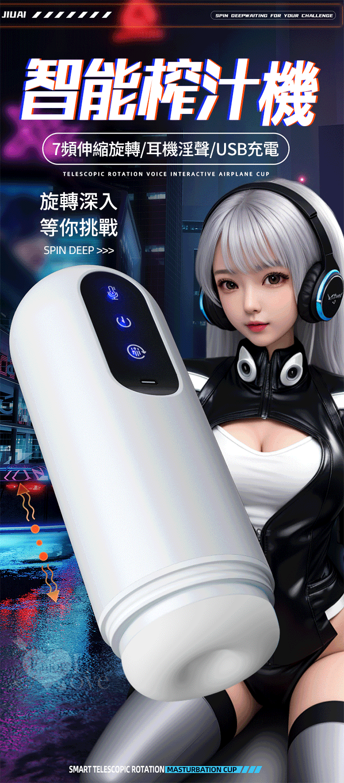 JIUAI 化身人間榨汁機 ‧ 全自動智能活塞伸縮旋轉 肉感蜜道鍛鍊自慰杯﹝7頻調控/耳機淫聲/USB充電﹞