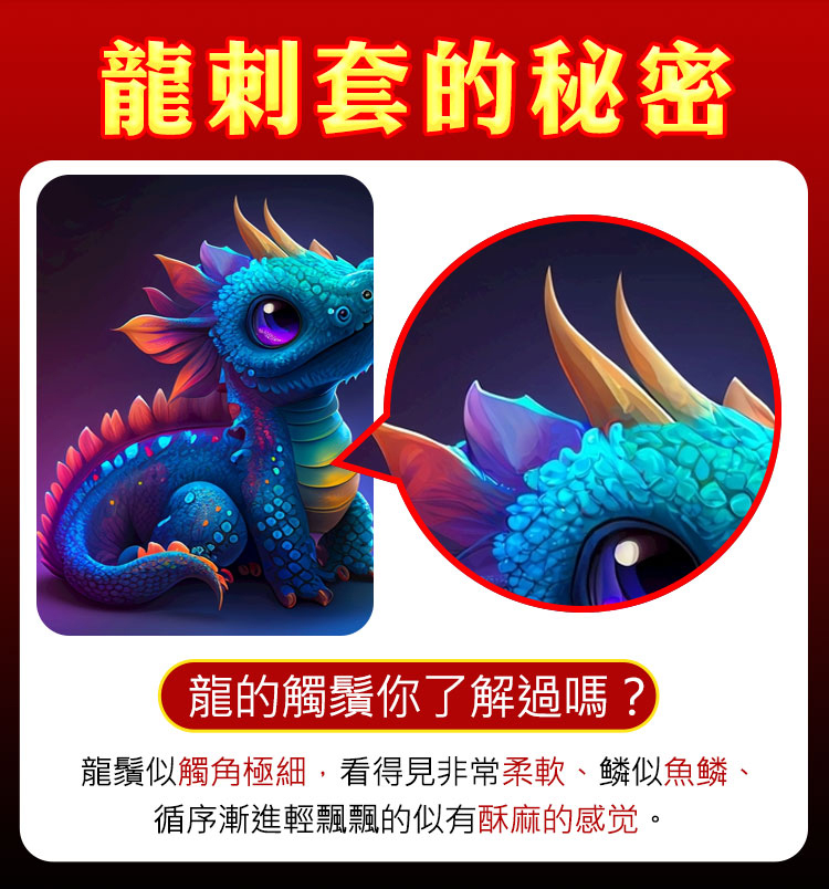 鱗片刺激舒適按摩,龍鬚似觸角極細,看得見非常柔軟、鱗似魚鱗、循序漸進輕飄飄的似有酥麻的感覺。