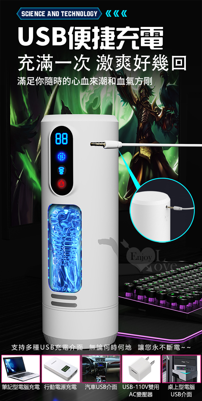 Hgod 狂飆MAX ‧ 液晶觸屏全自動伸縮吸夾吞吐自慰練莖杯(狂飆二代-白色)