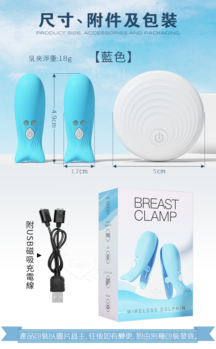 | Dolphin 小海豚 ‧ 無線遙控10頻強勁震動磁吸充電乳夾 - 自由掌控/前戲挑逗﹝藍﹞