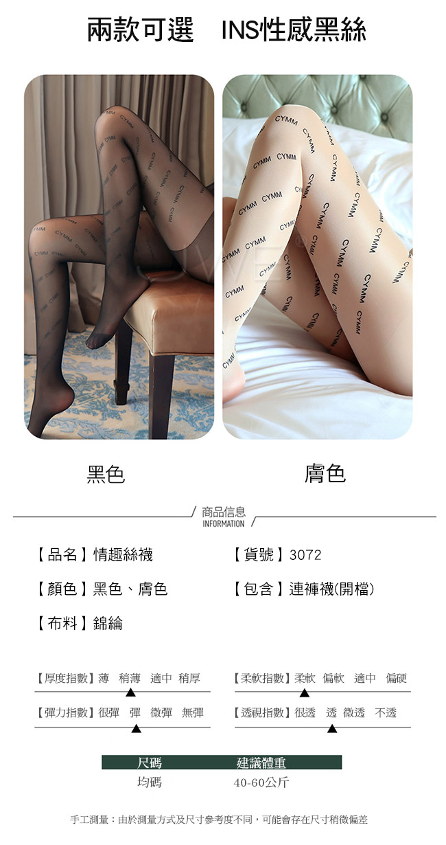 ◇◆月夢可心.性感透膚霧面質感字母開襠絲襪(膚色)◆◇