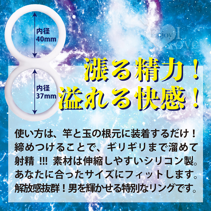 通過雙環緊錮陽根,您可以最後一刻再射精噴發! 材料由易於膨脹和收縮的材質製成。優秀的自由感!讓男人光芒四射的鎖精套環。 ■ 日本原裝進口,NPG出品 ■ 外盒尺寸:90 ×70 ×18 mm ■ 尺寸及規格:詳如圖 ■ 內附5ml潤滑液x1包 日文簡述: ダブルリングでペニスを締め付けることでギリギリの射精が可能! 伸び縮みしやすい素材を使用しております。抜群の解放感!男を輝かせる精液ロックリング。