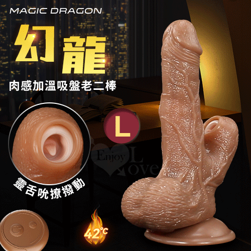 Magic Dragon 幻龍 ‧ 無線遙控逼真肉感加溫吸盤老二棒﹝7頻伸縮蠕震動+舌尖吮撩+突起經絡+USB充電﹞L