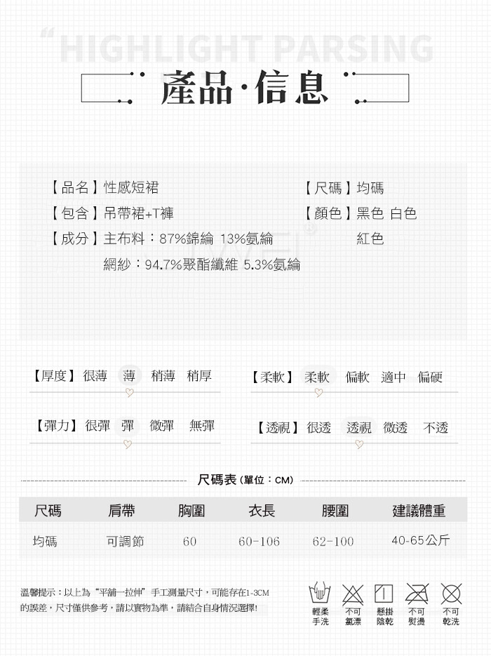 ■內容物:吊帶裙x1、T褲x1