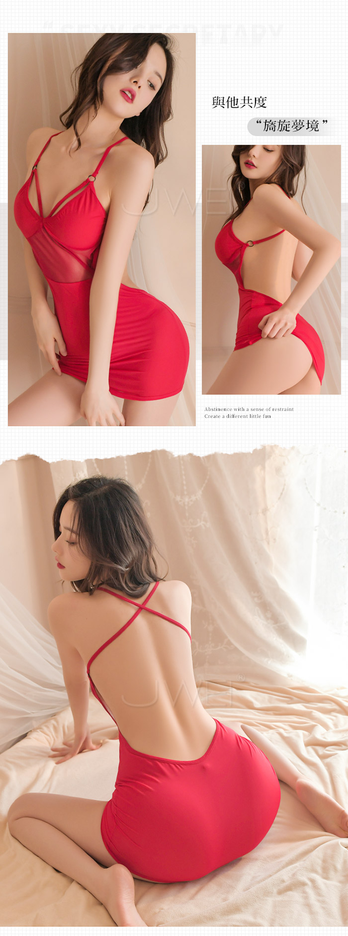 ►您現在的位置:首頁>情醉白蘭地.深V誘惑露溝薄透輕紗交叉肩帶露背連身裙2件組(紅色)