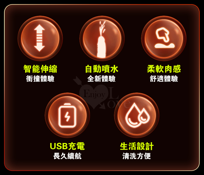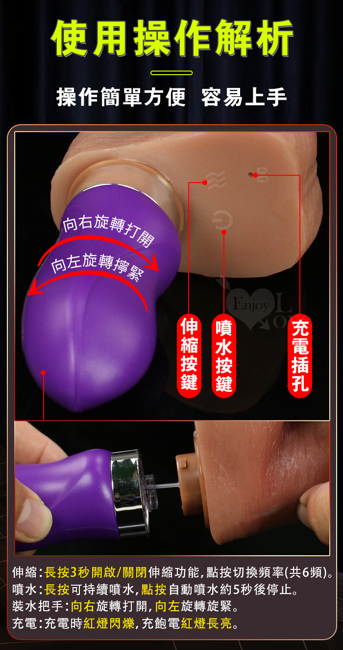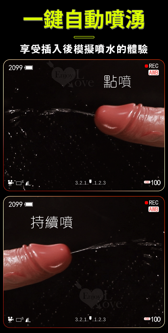 Squirt 噴水肉莖 ‧ 6段伸縮衝撞/一鍵自動噴湧/擬真凸筋/USB充電 真肉感按摩老二棒